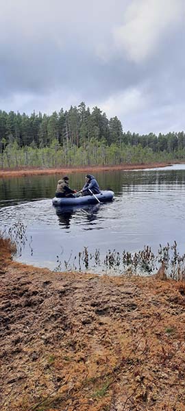 Сотрудники лаборатории гидрохимии и гидрогеологии ИВПС КарНЦ РАН аспирант первого года обучения Изотов Г.А. (рук. Г.С. Бородулина) и техник Забродин Д.А. провели отбор проб воды в ручье, реке и озере. Сотрудник группы исследования донных отложений м.н.с. Морозова И.В. для мониторинга содержания парниковых газов (СО2 и СН4) в оз. Чудесная ламба провела отбор проб воздуха и воды методом плавучих камер. Камеры устанавливали на поверхность воды и дна озера. Отбор проб воздуха осуществляли шприцами с разными интервалами (от 2 до 30 мин) в течение 4 часов (12 проб). Для отбора проб придонной воды, камеру, с установленным пробоотборником опускали на дно, затем поднимали через заданный интервал времени (от 3 до 120 мин) в течение 3 часов. Для воды использовали 4 камеры, отобрано 18 проб. Воду поверхностную для анализа парниковых газов брали из верхнего водного горизонта (2 пробы). Обработка полученных проб и новых данных с автономной станции и автономных датчиков запланирована на ближайшее время.