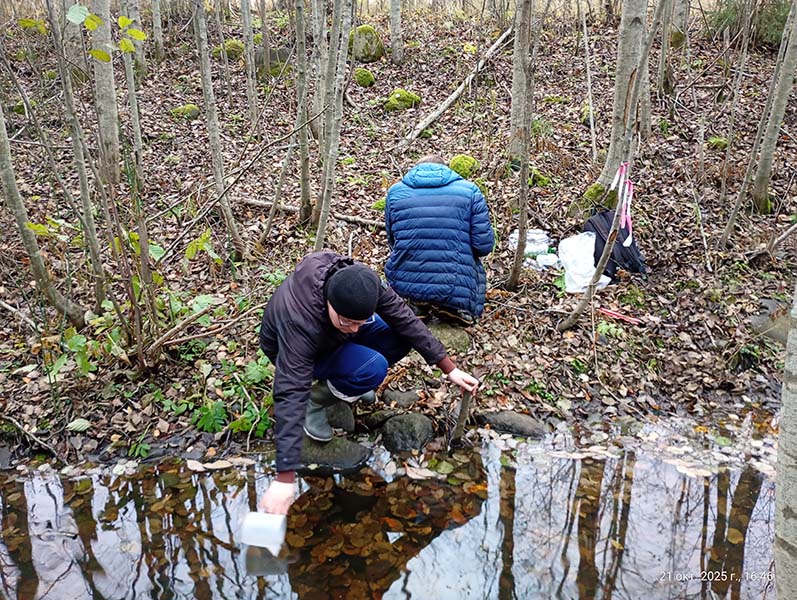 Исследования гидрофизических особенностей этих водных объектов было начато в апреле 2024 г. в рамках ВИП ГЗ, в 2025 г. продолжено в рамках тем гос. задания ИВПС. Сотрудники лаборатории гидрофизики ст. н. с. Здоровеннов Р.Э. и гл. гидролог Митрохов А.В. выполнили гидрофизические измерения, получили данные с автономной станции, которая в непрерывном режиме фиксирует температуру воды и содержание растворенного кислорода в озере, начиная с апреля 2024 г. Автономная станция оставлена в озере до мая 2026 г. В ручье Чечкин и р. Сандалка в период с лета 2024 г. по октябрь 2025 г. были уставлены автономные станции – датчики для непрерывной записи температуры воды и давления. Эти датчики были извлечены из водных объектов, так как в зимний период существует опасность повреждения дорогостоящего оборудования. Данные с этих датчиков будут использованы для расчета расхода реки и ручья.