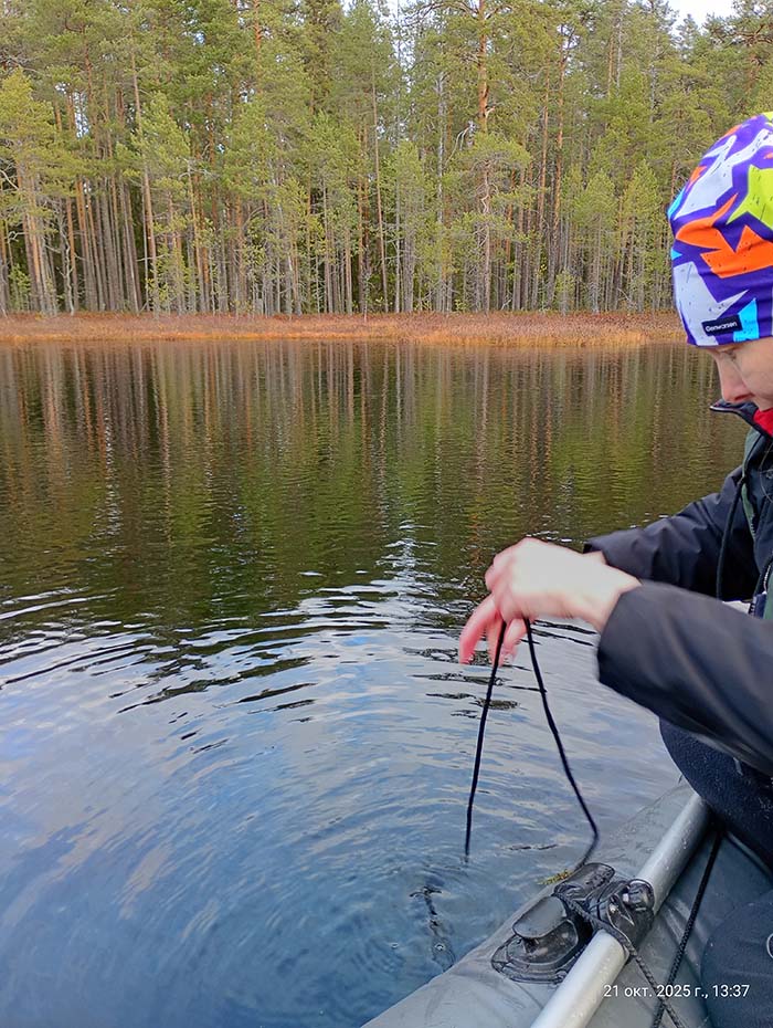 17 октября 2025 г. сотрудники лаборатории гидрофизики Института водных проблем Севера КарНЦ РАН провели комплекс гидрофизических работ на оз. Вендюрское – базовом объекте исследований Института – в рамках темы государственного задания «Роль гидрофизических процессов в экосистемах мелководных озер. Современное состояние и прогноз развития экосистем малых озер Карелии при антропогенном воздействии и климатических изменениях» FMEN-2021-0019.